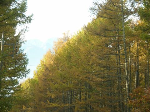 6時20分からの朝食を終わり山のグループを観音平へお送りしたときの写真です。だいぶ唐松の紅葉も始まっています。