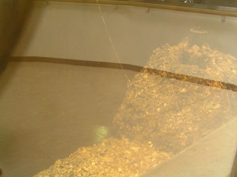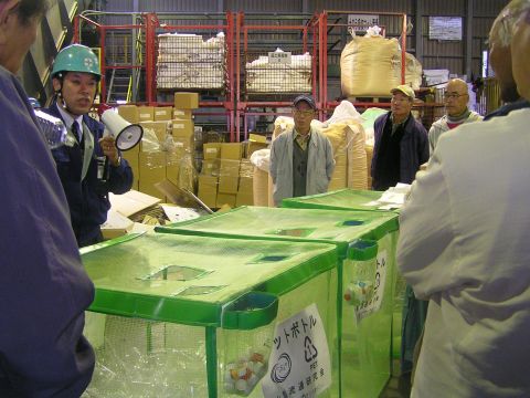 資源物をリサイクルしている会社です。ここでもまたまた出す側の責任をを強く感じました。アルミ系のフイルムが多いのですね。新聞紙をまとめる紐も紙の紐だと其の儘機械に入れられるけれど、ビニールの紐だとそれを又全部切らなくてはならないとの事。大変な手間が掛かります。考えさせられるエコツアーでした。