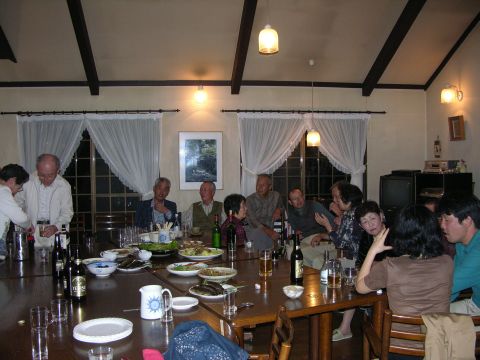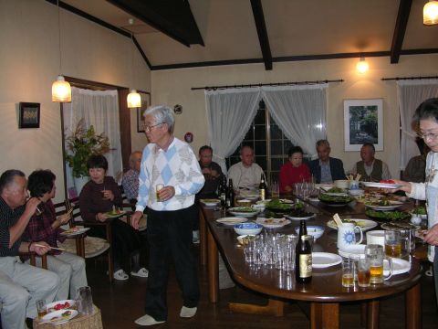 早いものでもう37回目になりました。年2回4月と10月にありますが今回は10人ほど少なく6組になりましたが心配したお天気も朝から穏やかな快晴となりホットしました。4時前からボツボツ帰ってこられて5時ごろからパーテイの始まりです。食事をしながら飲みながら40代〜80代までゴルフをやらない人も一緒に席を替わりながらお喋りに花が咲きます。眠くなった人から部屋の方に・・・。最後のグループは12時だったとか・・・・。