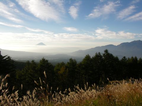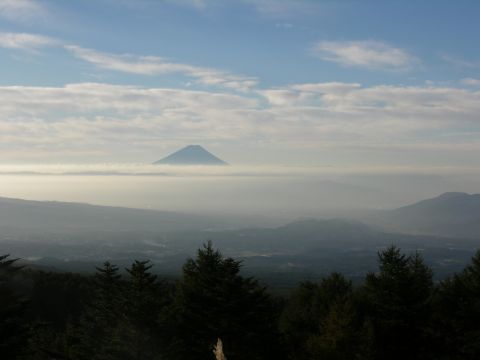 朝6時お客様を観音平までお送りする途中の富士見平からの富士山です。上の駐車場も編笠山や赤岳へ縦走する人の車で混雑していたそうです。