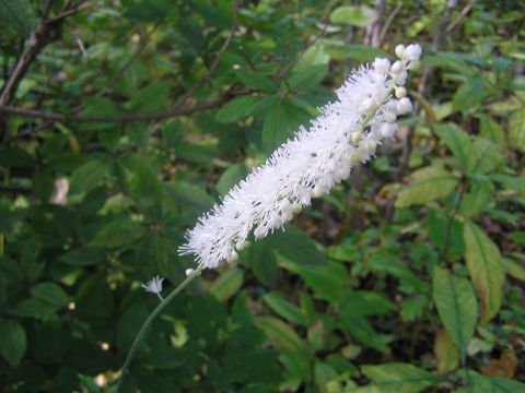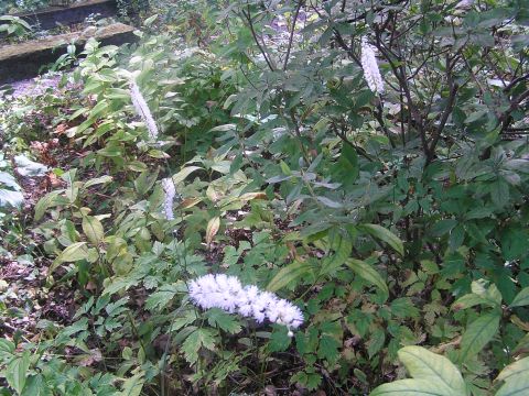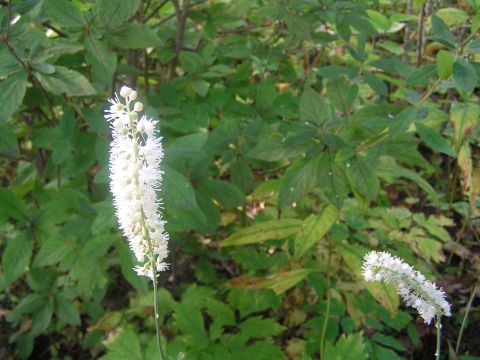 毎年蕾のままで気温が下がり咲かずに終わってしまうサラシナショウマが今年は丁度晴天に恵まれて気温も暖かく咲いてくれました。