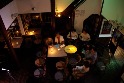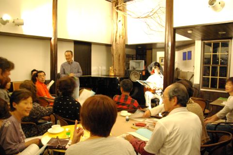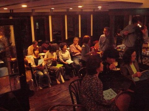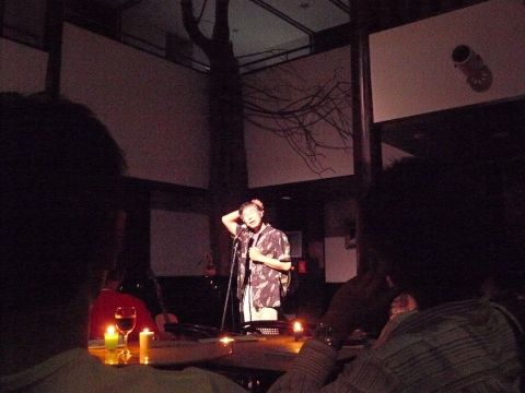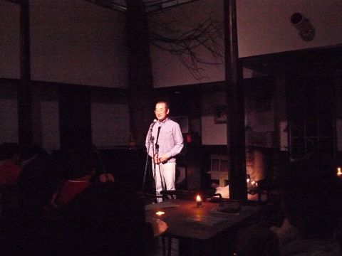 昨夜は、皆で楽しく少しづつでも、環境に優しいと思えることに取り組んでいきたいとの趣旨から持ち寄った廃油でキャンドルを作り、この日に備えました。プログラムは杉山亮さんの物語ライブ・山はげさんの弾き語りライブ・ギター生伴奏つき歌声喫茶と2時間半。あちこちにそっと置かれた小さなキャンドルのほのかな揺らめきのなかで、懐かしく、優しい時間が過ぎてゆきました。