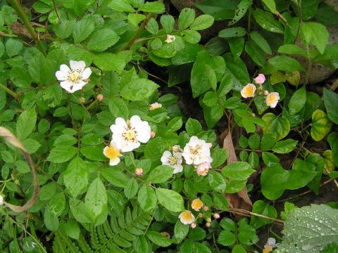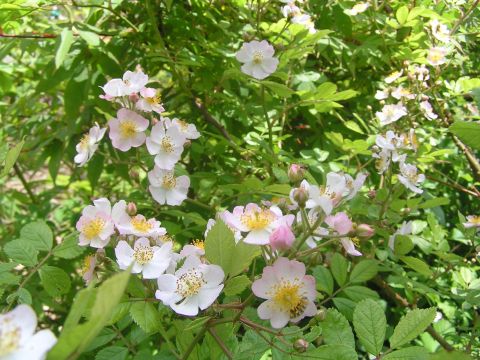晴れて、気温も上がり風もあるので木陰に入ると爽やか出梅雨のことなど忘れてしまいそうです。ヤブイチゲが咲き始め楽しませてくれています。木陰になったところは絶えてしまい、日当たりのいい場所では増えてきました。このところの晴れマークであのノバラが随分咲き始めて甘い香りを漂わせています。