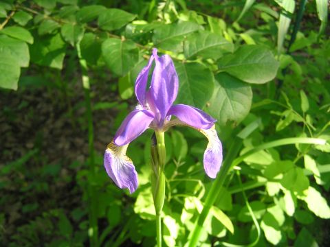梅雨の合間の晴れで、オダマキが庭のあちこちで咲き始めています。山アヤメも咲きましたがあちらに1本こちらに1本という具合で太陽が少ないからでしょう。イブキトラノオが2本咲きました。後2本の花芽が出ていたのに、虫に噛み切られていて残念です。