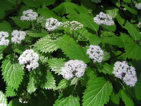 山アジサイも咲き始め、うすい紫の花と明るい緑色の葉っぱとのコントラストがとても綺麗です。アジサイは矢張り梅雨空に咲いているほうがお似合いかな??