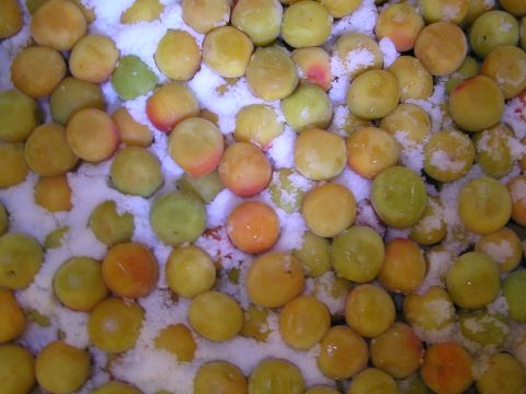 いよいよ梅の季節です。昨午前中に梅が届き夜になり洗い始めなり口を取り終わったのは12時前。今日、やっと桶につけ終わりホット一息です。美味しくつか〜〜〜れといのりつつ・・・・。後は梅酢の上がりを待つばかりです。
