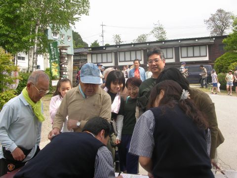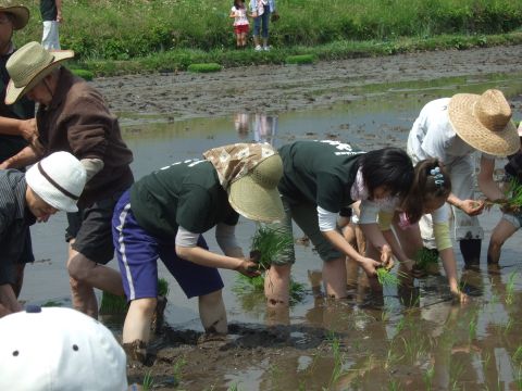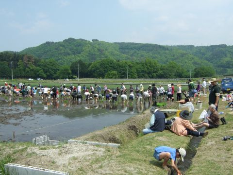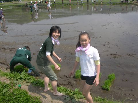 お天気にも恵まれ爽やかなみどりのすがすがしい空気の中での田植えの始まりです。小学6年生のあかりちゃんは、田植えがお気に入りのようです。お昼にはお弁当が出て試飲も・・・。みなさんほろよい??加減でお帰り。2時間ぐらいお休みです。朝5時出発でしたから、お酒も入り心地よい眠りだったことでしょう。