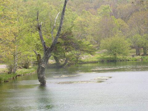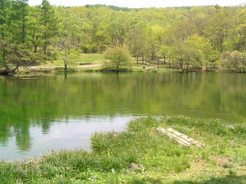 淡い緑が見せたくてまたまた八千穂高原へ白樺林に皆さん感動され、駒出池は3日前とはまた緑の雰囲気も変わり、池の向こうに広がる緑の林は微妙に変わる色合いがなんともいえなく、上の方から流れ落ちてくる川の水も豊富で、水の音が心を癒してくれます。芝の上に座り込んでのお喋りも弾みます。あと1週間もすると山桜や三つ葉ツツジが満開だそうです。
