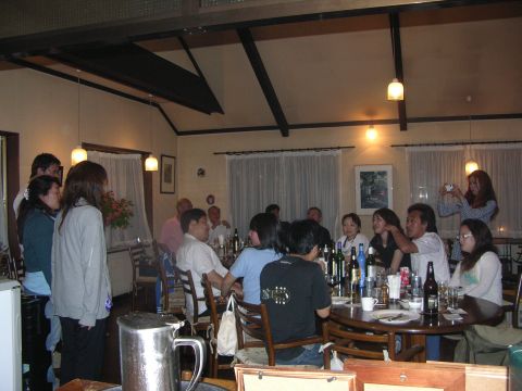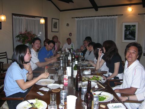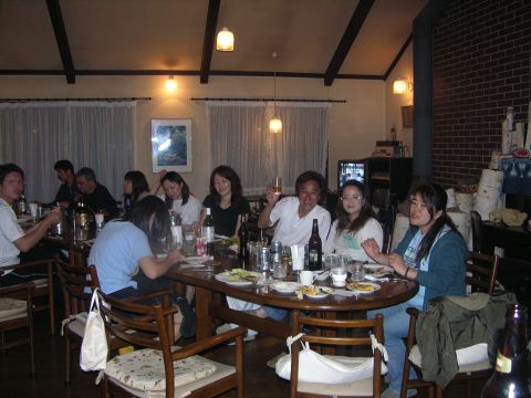 雨の予報もどうやら少しのびたようで、11時到着時には曇りで、ホッ!! お昼のカレーを食べてテニスコートへ。祈りもむなしく2時過ぎからぽつぽつと・・・。次第に本降りに・・・。もう10年ほど続いているテニスのサークルです。夕食の後は飲み会で私達もちょっとお仲間に・・・楽しいお喋りで時間は過ぎていきます。