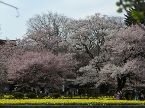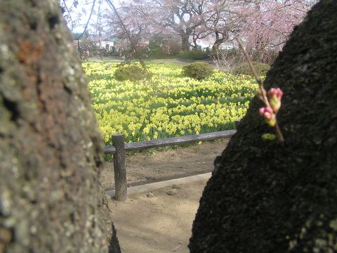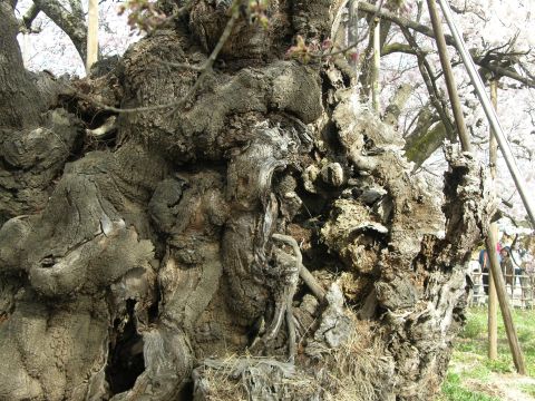 相変わらずの混雑振りです。樹齢2000年とあって幹は歴史を感じさせる。境内にはソメイヨシノも30本あるほか、水仙も植えられていて、コントラストが綺麗です。まだまだこれからの桜も多く楽しめそうです。