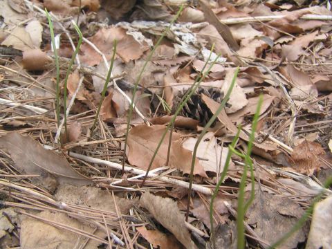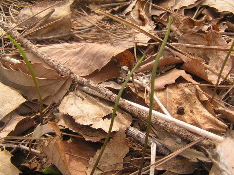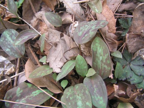 朝から予報通りのどんよりとした肌寒い日でした。カタクリの芽は、あの葉の小さなものが出てくるのかとずっと思っていましたが、昨日教わって信じられないほど驚きました。なんと太い針のような芽が5−6センチ伸びていました。これが1年目のものだそうです。