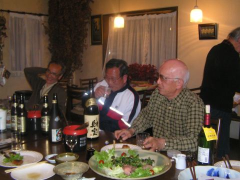 ウン才位だから年をとっただろうと思いながら来たけどえっ!!元気ですね!!よく動きますね。と驚かれ宴会が始まりますがみんな営業マンだっただけに声も大きく、当時の話に怒ったり、笑ったりと時間は瞬く間に過ぎて午前1時まで。でも皆さんお元気なこと。