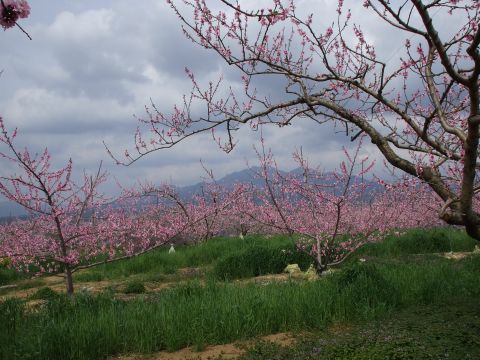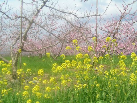 心配した雨も降らず時には晴れ間も見えてピンクの花の下でのお弁当も美味しく暑くもなく、寒くもなく丁度いい日和だったように思いました。帰りの新府駅までの道すがらも、右に左に桃畑や菜の花を目にしながらのときめきの時間でした。小淵沢で電車を降りたときは、雨が・・・・。皆さんよほど日頃の行いがいいのですね。