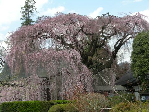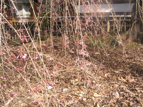 境内にあるイト桜はまだ一分咲き位でしたが、初めて見るような大木で太い幹からも糸のように細い枝が地面につくくらい伸びてその部分だけが、つぼみもピンク色で、花も少し咲いていましたが、他はまだまだ固いつぼみでした。お会いした方に聞いてみると、今月末から4月4日位でしょうとのことでした。満開になったらさぞかし見事なことでしょう。ぜひ行ってみたいものです。