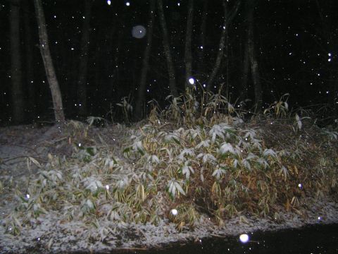 夜10時15分。雪で白くなっているよ!!の声に庭に出てみると、ほんのり白くなり、まだ降っていました。明日の朝は???解けているでしょうか??それとも少し残っているでしょうか??昨日は花の写真。今日は雪の写真。やっぱり行きつ戻りつしなければ春はやってこないのですね。