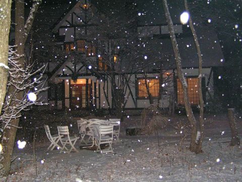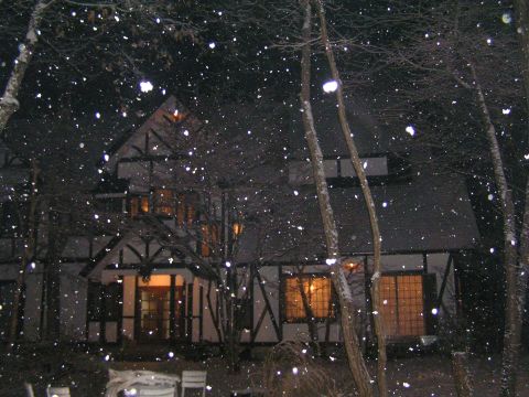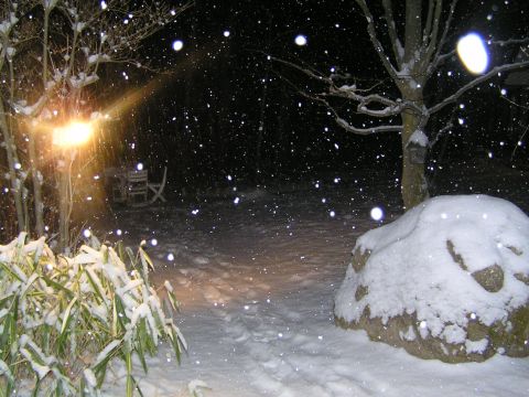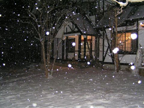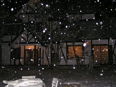 夕方から白いものが舞い始め、9時ごろには庭も一面真っ白!!今夜は積もりそう!!明日は朝から雪かきでしょう。