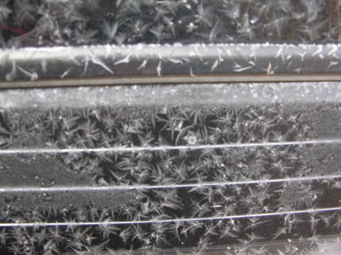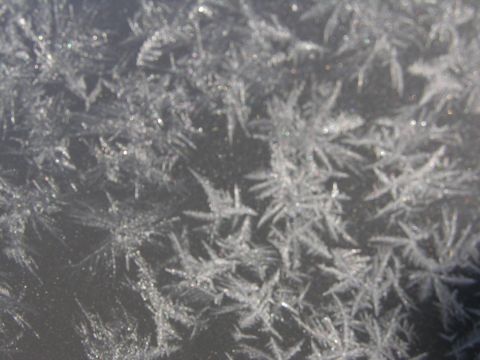 朝、車を見てえっつ!!ボデイに雪の結晶が、後ろのガラス窓にもいろいろな模様が。折からの光にきらきらと輝いて、自然のなせる技に暫し感動。今まで見たことがなかったのですが、気がつかなかったのでしょうか??