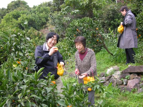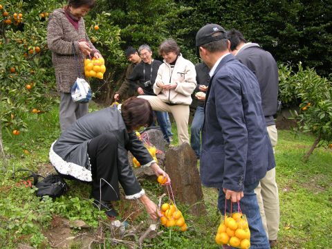 2年に一度のペンション振興会の旅行で真鶴へ。日頃山に住むものにとって海は魅力的。小田原市の郊外江の浦泊まりです。部屋の前にはこぶちさわとは相模湾が広がり豊かな緑の中には豊富な柑橘類のオレンジ色が目立ちます。小淵沢とはまた違った風景の中で、ゆったりとした時間がながれます。部屋の前にはじめて見る柑橘系の実がなっていて、お聞きしたら仏手柑とのことでした。宿の裏のみかん畑でのみかん狩りも、楽しいものでした。網の袋につめ放題。女性の袋は今にもみかんが転げおちそう。