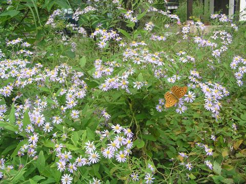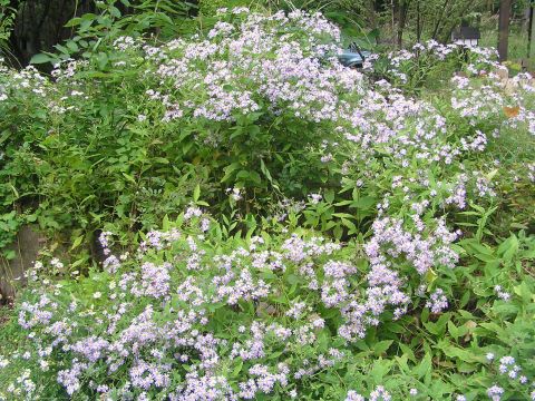 駐車場の隅に思いがけないくらいの量のノコンギクが咲き乱れています。昨年は、ほんの少しよりなかったのに、来年も咲いてくれるといいなと思いますが、こればかりはわかりません。一年前にもうちの近くで咲いていたところが今年は1本も咲いていません。自然界の不思議です。