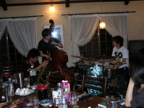 明日の小淵沢音楽祭出演のメンバーの皆さんはお昼ころ到着され、お昼はカレーを。午後から夜も練習を12時過ぎまで、明日は美しい自然の中で心癒されるジャズの音色が響きわたることでしょう。聴きにいけないのがとても残念です。
