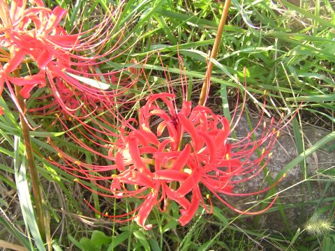 朝の気温は15度ちょっと冷たい感じでしたが、昼ごろからは温度も上がり、半そでに・・・。買い物途中で彼岸花を見つけました。昔は嫌いな花でしたが(子供のころは、お墓の周りに咲いていました)いまは、なんて可愛い華やかな花だろうと、思っています。