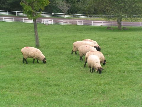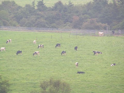 朝15度、Tシャツの上に長袖をはおり、久しぶりに、まきば公園へ。下の牧草地には赤い首輪のヤギ、めんようが6,7頭、遠くの牧草地には牛がたくさん放牧されています。なんだかとてものどかな風景で緑の中でねっころがりたい気分でした。