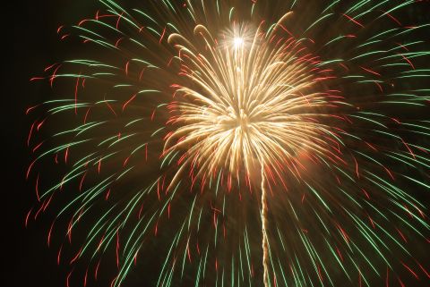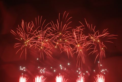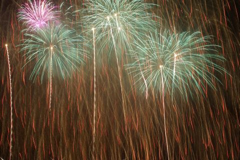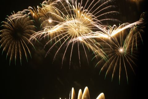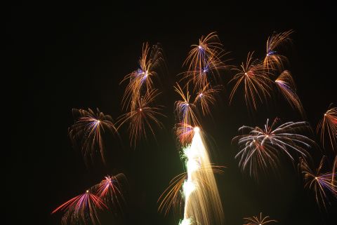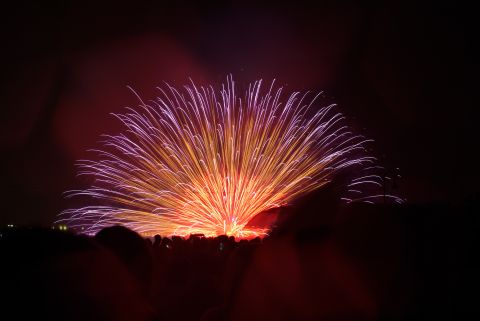 小雨が降ったりやんだりの中始まりました。正面だったので私たちの頭上で花開き、お腹に響くような音も、もの凄いものでした。