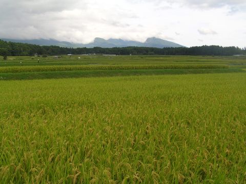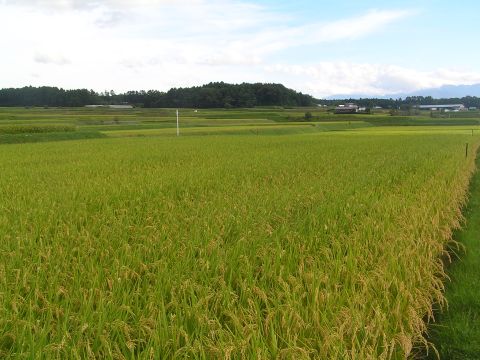昨夜から未明に直撃した台風の爪あとは予想外の雨量で土砂崩れがあり、中央道の閉鎖、中央線も昼過ぎまでと回復も遅れ足を奪われた人々は大変でした。幸いこの辺は、被害もなく2時間ほど車で走ってみましたが風の被害もなかったようで稲穂もぷっくりと膨らんでやっと2時ころに台風一過の青空になり、顔を見せた太陽に照らされて黄金色に輝いて重たげに頭をたれていました。