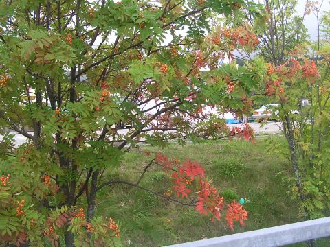 白樺湖の周辺のナナカマドがとても綺麗でした。葉が赤く紅葉していて驚きました。小淵沢周辺ではあまり見かけません・・・・・・。