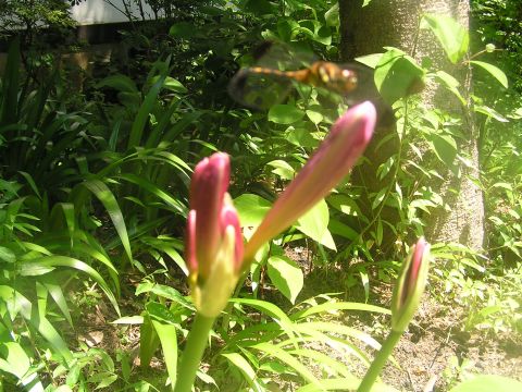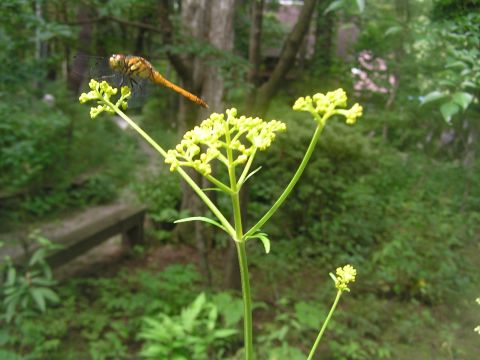 毎日毎日暑い日々ですが、朝晩が涼しいのでほっとします。降り注ぐようにせみの声が・・・・。今年は早くから異常発生のようです。おみなえしにトンボが止まっています。オトコエシも盛りを過ぎて咲いていました。別のところにナツズイセンが綺麗に咲いていました。あちこちに増えてほしい花です。