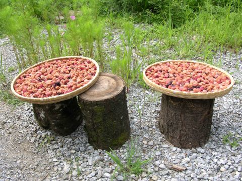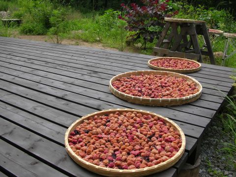 お天気が定まらずのびのびになっていた梅を天気予報を見てやっと干せてほっとしました。昨年より一週間も遅れました。が3日3晩夜露にもあて、無事に干しあがりホット一息です。後はカメに保存するだけ。一年の一つの仕事が終わりました。