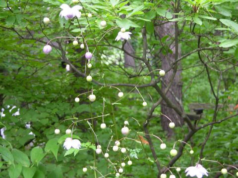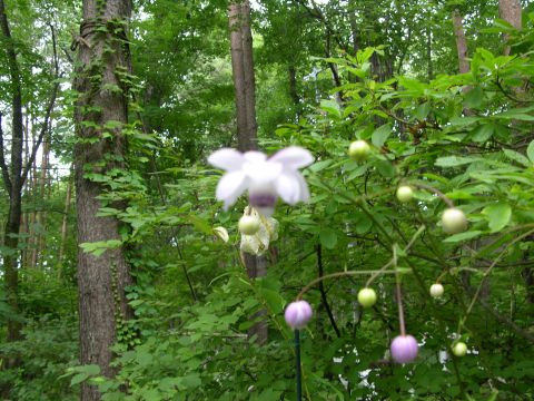 朝から夜遅くまで猛暑!!こちらに来てはじめての暑さでした。全国的な暑さで、各地で38度とか40度などとテレビで放映されています。熱中症で亡くなる方も多かったそうですが、こちらは夜は眠れないほどではなかったのでまずは一安心というところでした。そんな暑さの中で咲いているレンゲショウマを見ると、気持ちがいやされます。