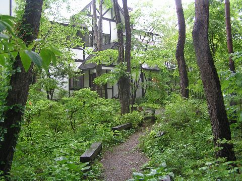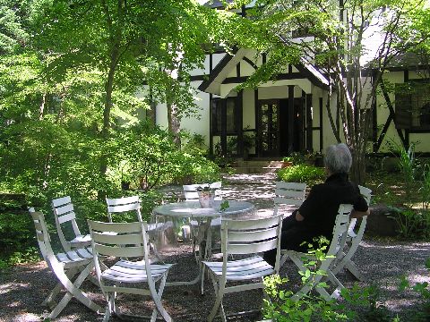 9時に出発のお客様をお送りして、朝食はまだだけど、梅雨とは思えない青空に誘われてちょっと休憩。日差しは強いのに木陰にはいると5度くらいは違うほどの涼しさ。思わずゆっくりと座り直してしまいました。見回すとえんじ色のオダマキが咲いていました。いつの間にかヤブイチゲも。2,3本。このまま時間を忘れたいけど、朝食を!!おそうじが・・と、現実に引き戻されました。