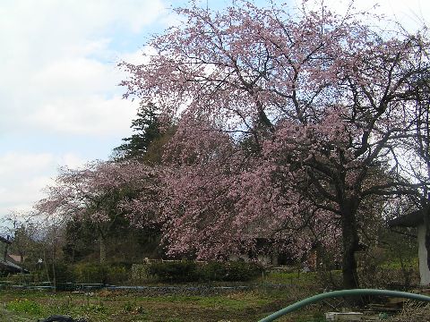 同じ高森に観音堂がありそこに樹齢250年のしだれ桜があります。細枝から垂れたはなと、茅葺き屋根の御堂との景観がとても素晴らしく、御堂の中には何体もの像が、奉られています。この御堂はこの時期だけ開けられているようです。大々的に宣伝されていない古木めぐりも、人も少なく、靜かに好きなだけゆっくりと鑑賞できていいかも・・・・・。如何ですか???