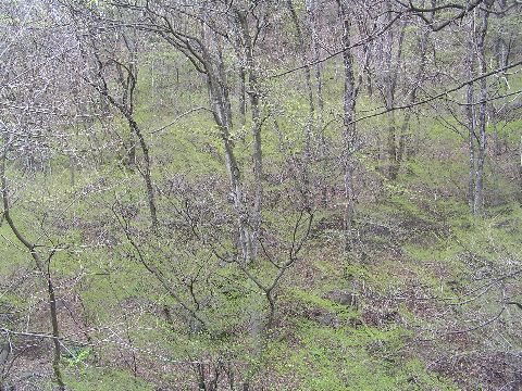 少し下の方ではもうこんなに柔らかな葉が出てきていました。柔らかな緑の芽吹きのなかには、妖精たちが飛び交っているようです。思わず車を止めて見入ってしまいました。
