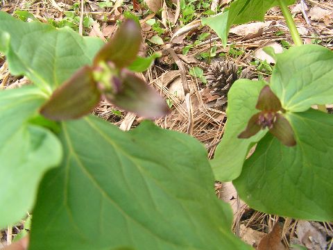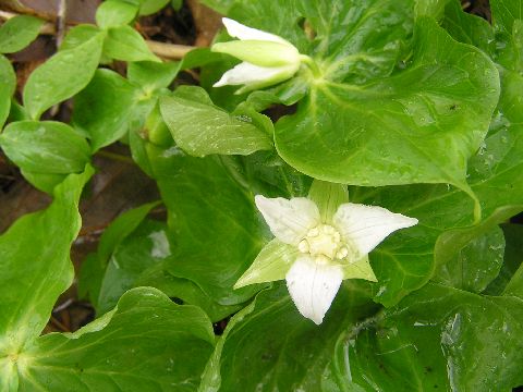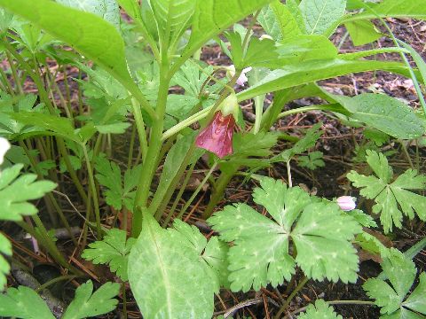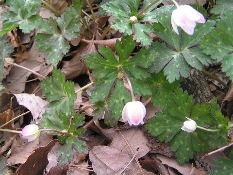 今午後5時、12度と暖かいです。庭を見てみると、アカバナエンレイソウ・シロバナエンレイソウ・キバナイカリソウが少しずつ咲いていました。周りにはまだ芽を出したばかりのものも・・・・。