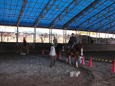 3回目のレッスンで、少し身体の緊張がとれてきたかな??と感じますが・・・・。ほんの少し肩がラクになったかな???馬のリズムにあえば、お互いに気持ちがいいのでしょうが。次は、外場だそうですが、大丈夫でしょうか???ウレシイ反面ちょっぴり不安・・・・。