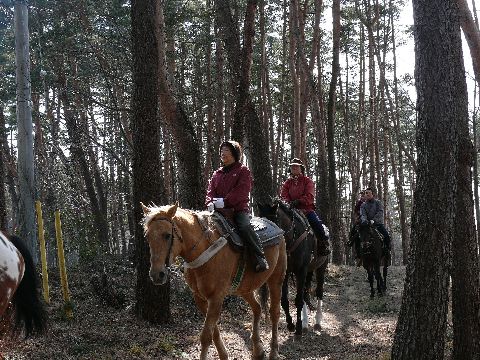 わぁよかったぁ。場内で並足をしてから、外へ、場内から外へ出る坂で、馬の背中が左右に大きく揺れる。初めての体験。林の中に入る。小鳥の声が・・・。自分が馬に乗ってここにいるなんて信じられない。まだまだ細い道や坂道はドキドキするけど、気分はハイに・・・。