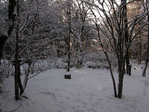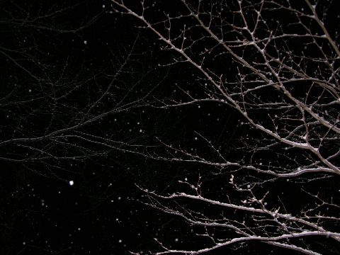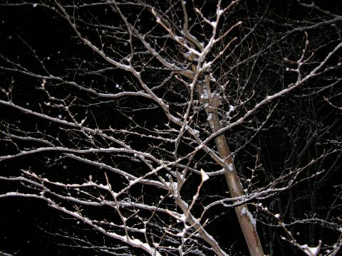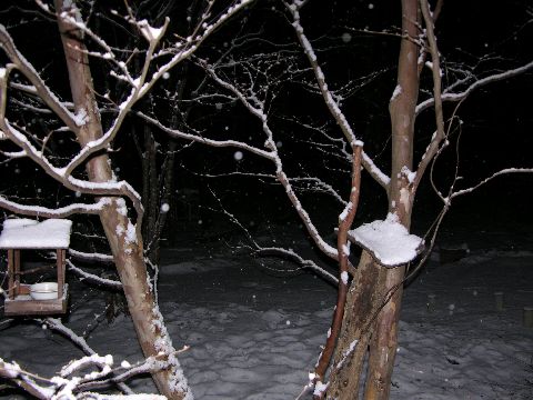 暫く降る雪を眺めていましたが枝に積もってきて、なかなか幻想的な風情になりました。