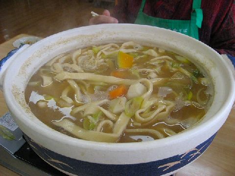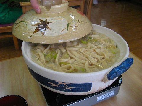 工房の方で用意された土鍋を火にかけて、煮立たせて、切った麺をほぐしていれます。ぐつぐつと煮たってきたら、火を弱め煮込みます。いいにおいがただよい、いただきま〜〜す。今日は珍しく寒い日なのでおいし〜〜い。久し振りにあった仲間との話に花が咲き時間がたつ程に、麺も柔らかくなり、コクが出て違った味が楽しめます。心も体も暖かくなった体験でした。この冬は何回か自分で麺を打ってほうとうを作ることになりそうです。