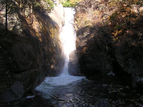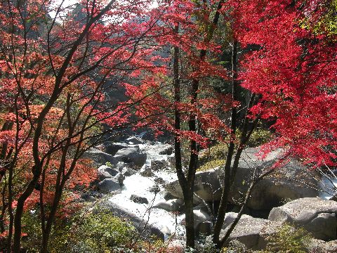 何年ぶりかの昇仙峡へお客様と出発!! 登りは、車で自然が育んだ渓谷美、美しい紅葉を眺めながら、影絵の森へ・そこからは歩いて仙が滝へ丁度虹がかかって、言葉では言えない美しさでした。岩の間をぬって水しぶきを上げ激しく流れる川沿いに紅葉を楽しみながら下ります。