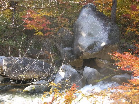 川沿いに下っていくと川の中にある大きな石がいろいろなものや動物に似ています。全部で20種類くらいあるそうですが、それを探しながら歩くのもおもしろいでしょう。