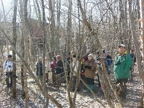 30人ほど。コゲラ・シジュウガラ・ウソ・ゴジュうガラ・コガラ・などで、今日はあまり多くの種類は見かけませんでした。途中池がありましたが部分的に凍り折からの八ヶ岳おろしの強い風でさざ波が出来てとても素晴らしい風情でしたが、その風のつめたかった事・・・。