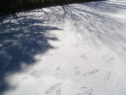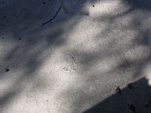 白樺に真っ青な空が映えて地面にはうっすらと一面の雪に立木の影がとても綺麗だったのと、雪の上にリスの足跡が・・・。とても可愛くて・・・・。鳥にはあまり出会えなかったのですが、自然の織りなす造形美に胸をわくわくさせた3時間でした。