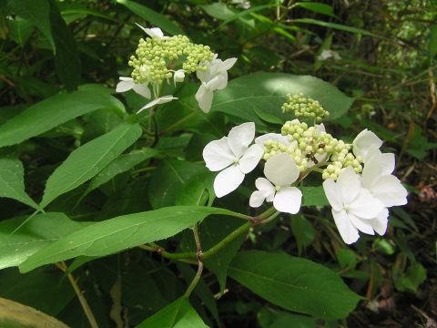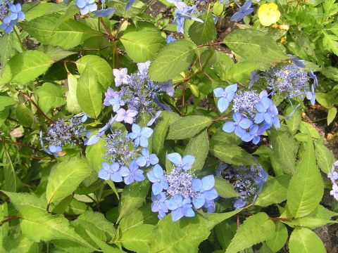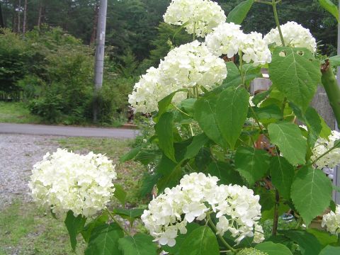 ヤマアジサイが咲き始めています。飛んであちこちに増えています。前の林にまでも根付いて増えています。今年お友達から頂いた濃い紫色のアジサイの色が何とも奇麗です。真っ白のまあるいアジサイもいただきました。