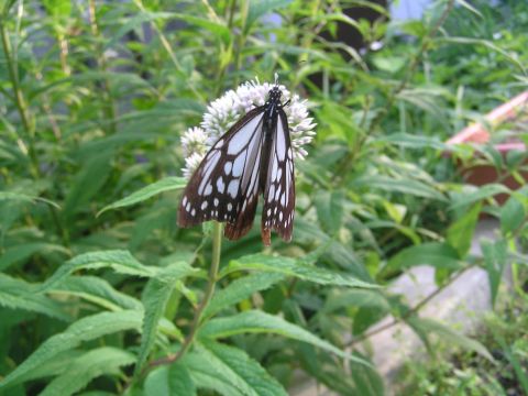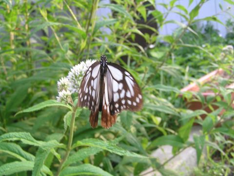 朝ゆらゆらとヒヨドリソウの回りをアサギマダラが飛んでいます。そういえば昨年もきたような・・・・。