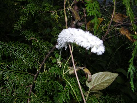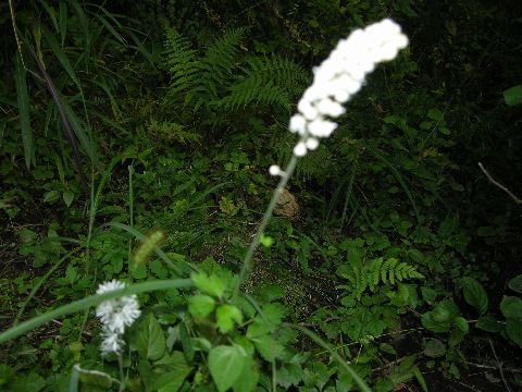 陽当たりのいい場所のサラシナショウマが3本ほど咲き始めました。木が大きくなり陽当たりの悪くなったところは、まだまだ固いつぼみで寒くなる前に咲くかどうか心配です。