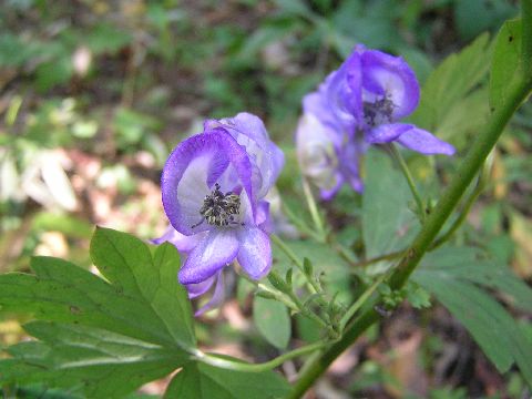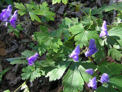 ヤマトリカブトが咲いています。庭に咲いているのは、花数も少なく背丈も短いですが、林に咲いているものは背丈も大きく横に延びて沢山の花を付けています。花を見ているだけでは人も死ぬほどの猛毒を持っているなんて信じられませんが・・・・・。