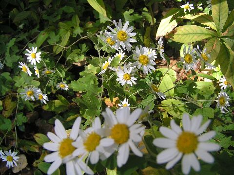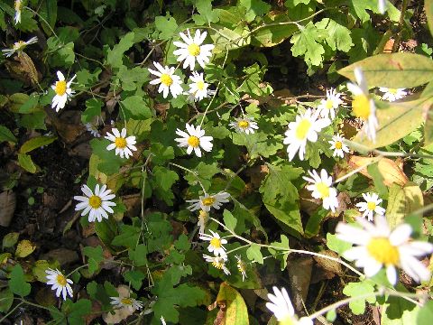 温かい日差しに照らされてリュウノウギクが沢山咲いています。今年は随分増えて彼方此方に広がっています。これから、花の少ない時期、コップに差すのにとても重宝します。