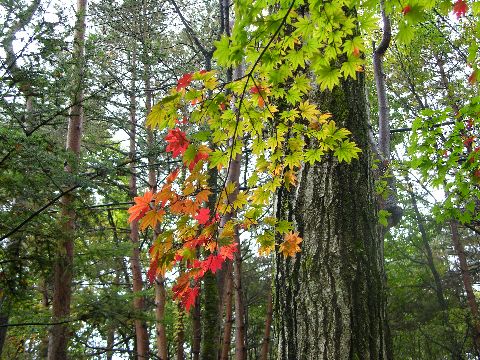 昨夜は10日振りのまとまった雨になりましたが朝にはやんでホットしました。写真同好会のお客様も朝早く散歩にいらして雨上がりの風情がとても良かったとのこと。吐竜の滝は紅葉の真っ直中だったそうです。ちなみに家の庭もほんの少し紅葉が始まりました。